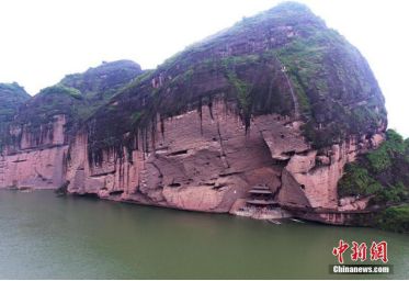 龍虎山崖墓數(shù)以百計,全部鑲嵌在仙水巖一帶的懸崖峭壁之上。仙水巖諸峰峭拔陡險,巖壁光滑平展,巖腳下便是瀘溪河,臨水懸崖絕壁上布滿了各式各樣的巖洞,獨特的地理環(huán)境是龍虎山崖墓的基本成因。從瀘溪河舟中或地面眺望,隱約望見一個個巖洞口或釘木樁,或封木板,“藏一棺而暴其半者”多處可見。這些崖墓大多是2500多年前春秋戰(zhàn)國時期古越人的崖墓懸棺,其葬位離水面20至50米以上,高的達到300余米。在大片巖壁上,洞穴星羅棋布,星星點點,或高或低,或大或小,數(shù)以百計。因這些洞穴高不可攀,無人入內(nèi),其中所藏之物,多少年來一直是一個不解之謎。