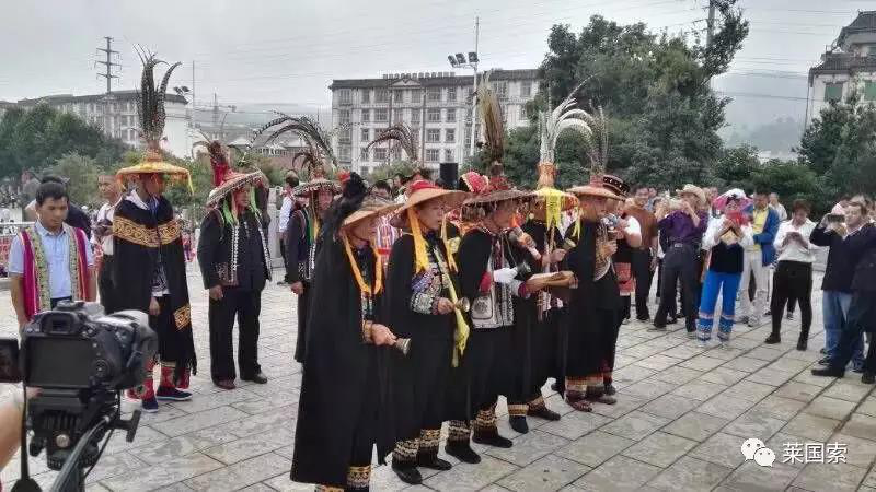 祭祖大典隆重、肅敬、莊嚴(yán)。儀式: 1、吹奏長號(hào)樂、鳴禮炮,敬告天地東西南北中五方神抵;2、奏樂(長號(hào)、噴吶),請(qǐng)彝族畢摩上香;3、奏樂(長號(hào)、噴種),敬貢三牲,果品,圣水,豬頭,雞;4、請(qǐng)彝族畢摩撒五谷,念誦《散五谷詞》;5、彝族畢摩向祖先阿普駕幕行跪拜禮,恭誦《祭祖祈福經(jīng)》;6、請(qǐng)各地同胞代表恭誦《祭文》;7、請(qǐng)各位領(lǐng)導(dǎo)、各位來賓、各位朋友全體起立!向彝族祖先阿普篤幕及六祖行叩首禮:一鞠躬!再鞠躬!三鞠躬!禮畢!8、奏樂(長號(hào)、噴吶),恭請(qǐng)貴賓敬獻(xiàn)高香。