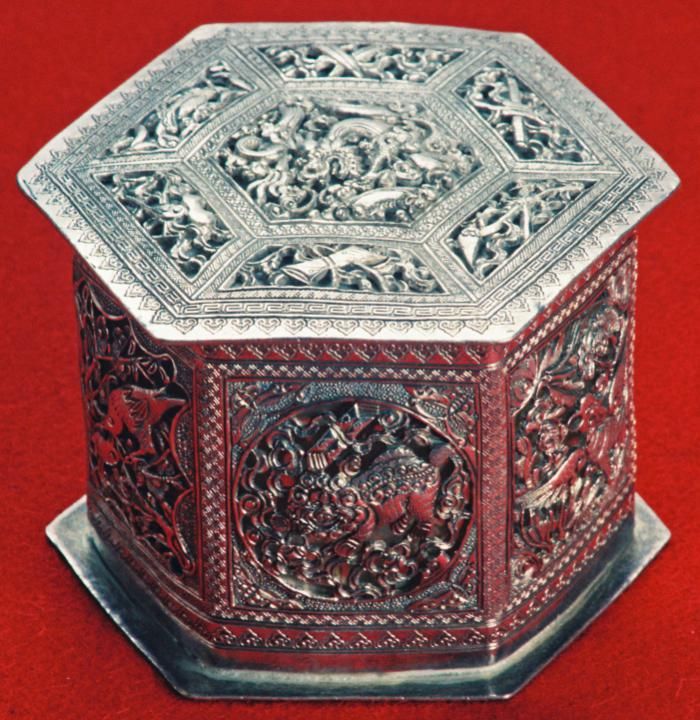阿昌族的傳統(tǒng)文化豐富多彩,特點(diǎn)鮮明。其手工業(yè)極為發(fā)達(dá),手工業(yè)門類有冶鐵、釀酒、榨油、紡織、染色、編制竹器和銀器制作等。其中以打制鐵器和銀器的歷史最為悠久且技藝精湛。