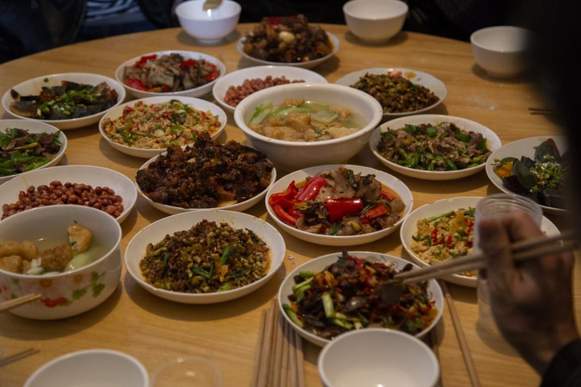敬灶始,先在堂后做法事后,再端起文書到灶房灶頭做法事,文書燒在灶中。領(lǐng)牲法事有的戴面具,有的不戴面具。領(lǐng)牲都極具戲劇形態(tài),其中有角色對(duì)白,邊唱邊舞,壇場(chǎng)打諢,語(yǔ)言幽默,觀眾喜愛。一般都把洗凈的豬抬進(jìn)中堂,用司刀把豬尾巴割掉,掏出豬腰,請(qǐng)出殺豬匠來(lái)說(shuō)一些奉承言語(yǔ),燒紙,敬酒。領(lǐng)牲的程序,首先去豬頭,后把三絲肉、合同肉;扎案肉;豬尾巴;豬腰子,頭、蹄腳用來(lái)敬菩薩,五心肝肚也要拿來(lái)敬菩薩。