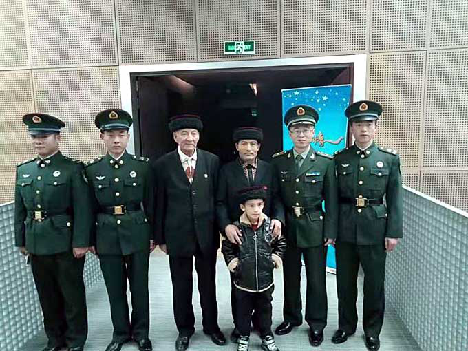 拉齊尼·巴依卡一家人在北京參加央視節(jié)目錄制后與邊防戰(zhàn)士合影。(網(wǎng)絡(luò)圖片)