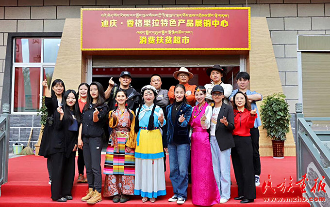 2020年7月,何永群(前左四)在迪慶·香格里拉特色產(chǎn)品展銷中心消費扶貧超市參加活動。