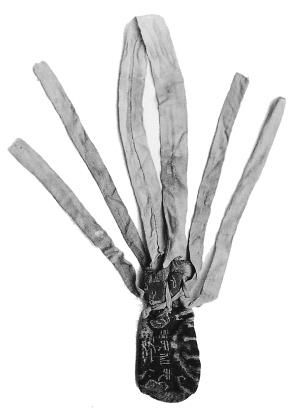 “五星出東方利中國”錦護(hù)臂,東漢時(shí)期,民豐縣尼雅墓地出土。