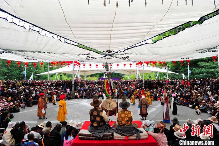 資料圖為藏戲《蘇吉尼瑪》在拉薩市宗角祿康公園上演。 記者 貢嘎來(lái)松 攝
