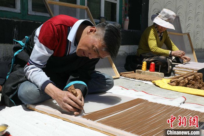 資料圖為西藏拉薩尼木縣吞巴鄉(xiāng)手藝人在自家手工制作藏香。 記者 貢嘎來(lái)松 攝