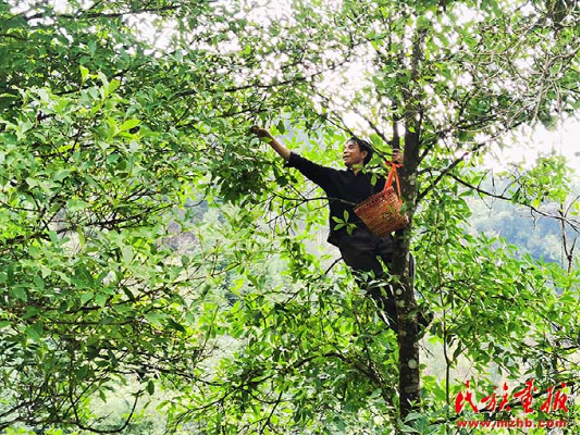 羅運(yùn)村村民在樹(shù)上采摘八角。