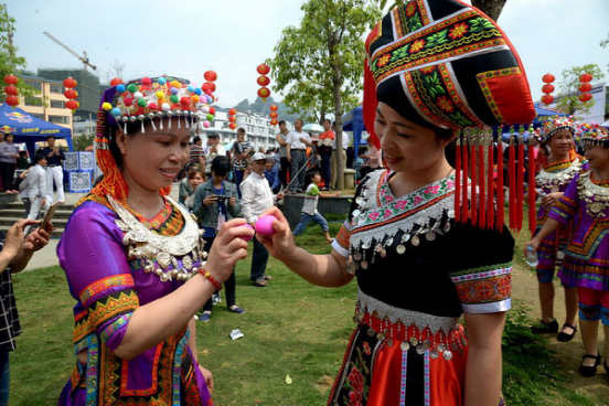 對(duì)歌間隙,男女青年還把帶來(lái)的紅綠雞蛋對(duì)打,比試誰(shuí)的雞蛋更硬,增加了節(jié)日的樂(lè)趣。
