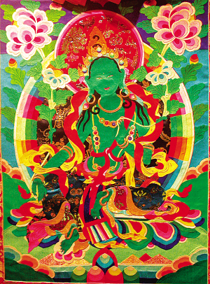 熱貢藝術(shù)是雪域文化和中原佛教藝術(shù)完美結(jié)合的一種獨(dú)特的藝術(shù)形式,是藏傳佛教藝術(shù)中的一個(gè)重要流派,它大體始于元代,距今已有700多年的歷史。熱貢藝術(shù)主要內(nèi)容包括繪畫、雕塑、堆繡、建筑裝飾、酥油花等,其中以繪畫、堆繡、雕塑為主。它們?cè)诩挤ㄉ霞壤^承了藏傳佛教傳統(tǒng)的創(chuàng)作手法,又融會(huì)了漢族繪畫和其它地方的民間藝術(shù),極具觀賞價(jià)值和藝術(shù)價(jià)值。
