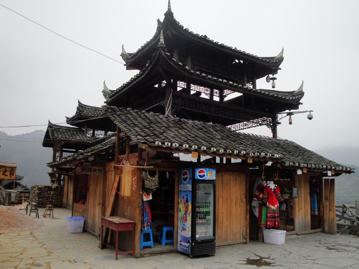 苗家人喜歡木制建筑,一般為三層構(gòu)建,第一層是為了解決斜坡地勢不平的問題,所以一般為半邊屋,堆放雜物或者圈養(yǎng)牲畜,第二層為正房,第三層為糧倉,有的人家專門在第三層設(shè)置“美人靠”供青年姑娘瞭望及展示美麗,以便和苗家阿哥建立關(guān)系。