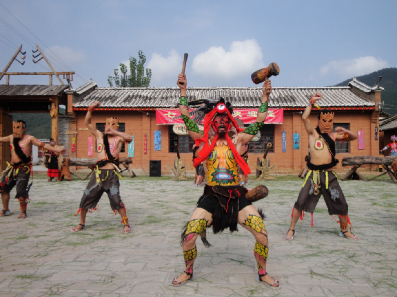 “彝族啞巴節(jié)”一般是在正月里舉行,每逢節(jié)日到來,當(dāng)?shù)氐囊柏埳较卤銜松饺撕?,盛況空前。七宣村是一個純粹的彝族村莊,每當(dāng)節(jié)日來臨時,村里會組建起一支“啞巴”隊伍,由“大啞巴”“中啞巴”“小啞巴”組成,另外還有人負(fù)責(zé)扮神牛,還有專門的葫蘆笙、三弦、笛子樂手?!按髥“汀鳖^戴插著野雞羽毛的牛皮頭飾,下穿一條羊皮短褲,上身由畫師彩繪一黃兩青三條龍,分別代表龍王和兩位龍子。“中啞巴”和“小啞巴”彩繪的內(nèi)容主要是圖騰和彝族文字等。一切準(zhǔn)備妥當(dāng)后,隨著一聲聲“請啞巴出山嘍”的喊聲,4個“中啞巴”用彩轎抬著“大啞巴”走出龍王廟,來到搭好的主場地,進(jìn)行“啞巴舞”表演。表演結(jié)束后,“啞巴們”還要將啞巴舞跳到每一戶人家里,除非家中有親人新故,否則不能漏掉一戶。跳進(jìn)了哪一家,就意味著把一年的豐收、幸福、吉祥帶到了這一家。