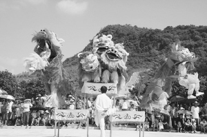 獅子是漢代張騫出使西域后,將其與孔雀等一同帶回的。由于體型威武,自古以來民間都把獅子當(dāng)成威猛與吉祥的象征,人們認(rèn)為舞獅可以驅(qū)邪避災(zāi),故每逢喜慶節(jié)日都喜歡扮成獅子,在鑼鼓的伴奏下做出各種形態(tài)來助興。久而久之,舞獅成為民間活動(dòng)中不可或缺的傳統(tǒng)表演節(jié)目。