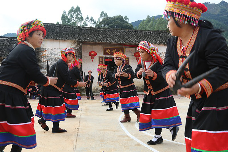 “要想唱歌就開口,要想喝茶就洗手;邊打油茶邊唱歌,神仙哪有我逍遙。”在美麗的兩安瑤族鄉(xiāng)沙坪村,我們領(lǐng)略了鐘山瑤族門唻歌以及蝴蝶歌、瑤族羊角長鼓舞的魅力。