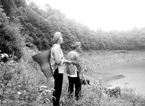 記得小時候有一回上學(xué),我在“之”字形的山道上遇到一撥“背腳佬”。只見他們那布滿蚯蚓般青筋的腿肚顫抖著,手中鑲著鐵釘?shù)拇蜩圃谑迓飞隙‘?dāng)?shù)貫R出火星,草鞋里的雙腳踏著堅(jiān)實(shí)的土地。每當(dāng)轉(zhuǎn)過一個彎,他們就一邊把打杵支在背簍下面,一邊發(fā)出“哎——喲嗬——”的吼聲。抹下一串汗珠,疲勞仿佛也被扔下山,引起陣陣回響。不知是誰還吼起了粗獷的山歌:“郎在高山打傘來,姐在房中做花鞋,雙手接過郎的傘,用手把姐抱在懷……”