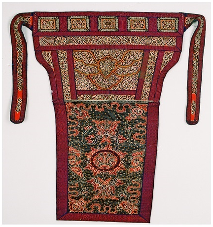 正因馬尾繡的工藝獨特,蘊含著豐富的文化內(nèi)涵,2006年水族馬尾繡入選第一批國家級非物質(zhì)文化遺產(chǎn)名錄。而馬尾繡背兒帶更是將水族馬尾繡的藝術(shù)價值體現(xiàn)得淋漓盡致。民族文化宮博物館所藏的這件馬尾繡背兒帶,刺繡精美,展現(xiàn)了水族婦女嫻熟的刺繡技藝,是研究水族民俗、民風、圖騰崇拜等民族文化的珍貴藝術(shù)資料。