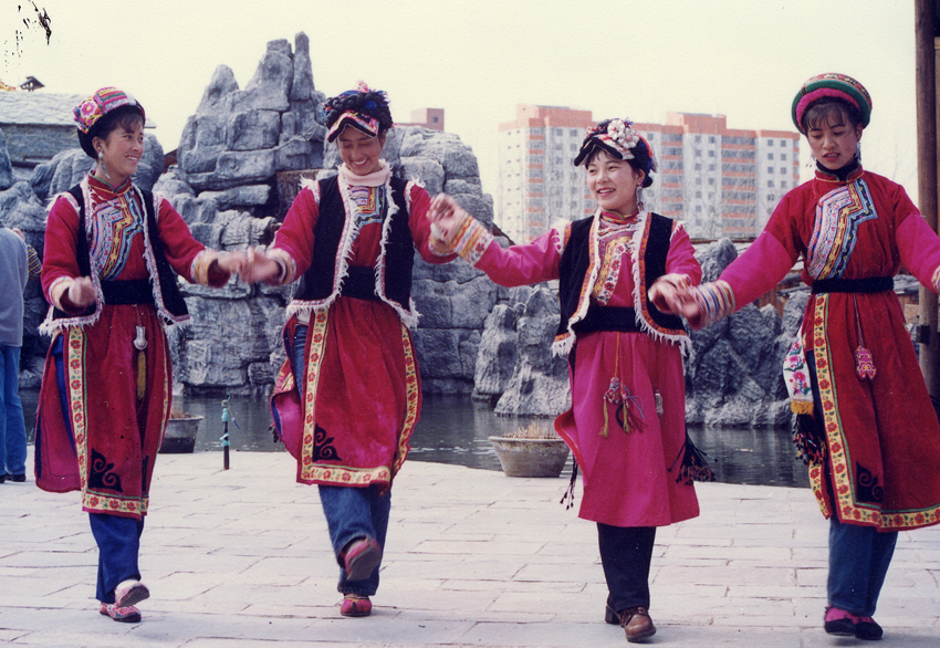 薩朗譯為鍋莊,譯為又唱歌又跳舞,是自娛性舞蹈。按照具體場景可分為辦喪事跳的“憂事薩朗”和辦喜事時跳的“喜慶薩朗”。該舞男女圍著火塘或場院,按照逆時針方向邊歌邊跳。開始,先男女輪唱一遍舞曲,然后共同起舞,速度由慢到快,跳到激烈時,領(lǐng)舞男子加快舞步,帶頭交換各種不同的舞蹈動作,或雙腿交替重踏,或左右旋轉(zhuǎn),男女相互競爭,氣氛逐漸熱烈。舞至高潮時,男子叫聲“嚇喂”,女子應(yīng)和“喲喂!”一曲就此結(jié)束,接著再變換新的舞曲和步伐。