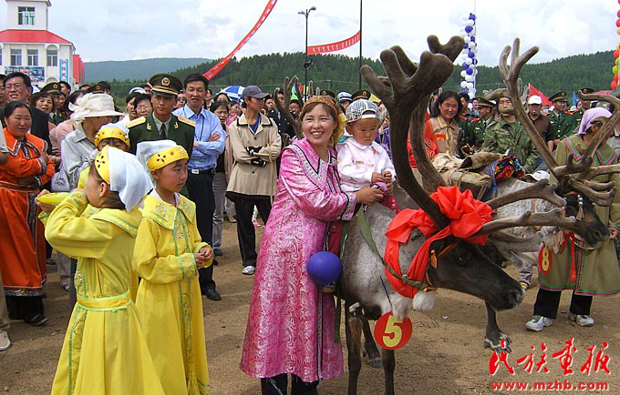 鄂溫克族人飼養(yǎng)馴鹿歷史悠久,無論男女老少都喜愛和保護馴鹿,將它們視為吉祥、幸福的象征。圖為敖魯古雅鄂溫克族鄉(xiāng)的馴鹿王比賽上的參賽馴鹿