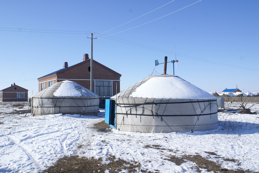 牧區(qū)主要的住房是“蒙古包”,鄂溫克人稱住房為“糾”,分別有“奧布海糾”和“俄儒格糾”。前者是一種形式簡陋的蒙古包式的住房,一般為打獵、拉腳、打羊草時的臨時住房,或為經濟困難人家迫不得已時所居住。建造“奧布海糾”需要二三十根榆木桿子,頂端用繩子結在一起,下端插進地里形成“糾”的架,用葦子搭蓋出呈傘狀的棚房。這種房早期沒有定形的門,一般向南開一小口出入,僅以葦捆及氈子作門。后來“奧布海”也裝置頂孔,材料是榆木和柳木,鑿出現(xiàn)代蒙古包的包頂。圓頂的邊緣上鉆有小孔,以便插進木桿,成錐形。同時用葦子搭蓋成屋,冬季門里掛上一層氈子防寒?!岸砣甯窦m”也就是現(xiàn)在所稱的“蒙古包”,因為圓孔屋頂而得名。蒙古包的木架是用上、中、下三節(jié)結構組成而成,外面的擋簾根據季節(jié)不同而樣式不同,夏季采用柳條串成簾圍在包外,用蘆葦串成傘形簾,蓋在上面擋雨。冬季則用帆布外加氈子圍嚴,以保包內溫度,近年冬季在包內床下搭熱炕。蒙古包一般選在陽坡、地勢較高、用水方便、靠近牧場的地方搭蓋。在搭蓋蒙古包時,雨季要搭得斜度大些,以防漏雨;冬季為免受強風吹襲,則搭建的斜度小。蒙古包內置有床、爐子,有木箱柜、桌子等用具。近年來,隨著經濟的發(fā)展,住土房、磚房的越來越多。值得一提的是鄂溫克族的牧民雖無固定住所,卻有固定建筑,那就是他們的倉庫。鄂溫克族的倉庫極為奇特:先砍去相鄰兩棵大樹的樹梢,作為柱子,然后用木頭壘出一間懸空的倉庫,地上斜豎一根砍有階梯的木柱為梯。倉庫中存放食品、獵物、衣服、用具等。牧民從不上鎖,其他獵人可任意取用,事后如數歸還即可。