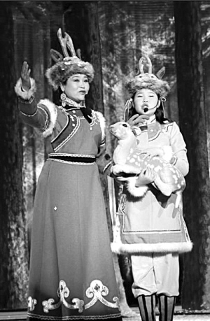 大型民族舞臺劇《勇敢的鄂倫春》是鄂倫春自治旗2011年為建旗60周年精心打造的一臺劇目。該劇由《火塘·夏》、《遠山·秋》、《圍獵·冬》、《家園·春》四幕組成,以反映鄂倫春族的核心文化——狩獵文化為主線,詩意地講述了鄂倫春族狩獵生活的全過程,生動鮮活地展示了在茫茫的大森林、清幽的河川峽谷世代繁衍生息的鄂倫春族勇敢、細膩的民族精神和性格特征。該劇由著名藝術(shù)家烏蘭托嘎?lián)嗡囆g(shù)總監(jiān),塞納編劇,三虎導演。全體演職人員63人,由鄂倫春自治旗烏蘭牧騎專業(yè)演員和15名鄂倫春族群眾演員組成。演員隊伍中,年齡最大的71歲,最小的7歲。