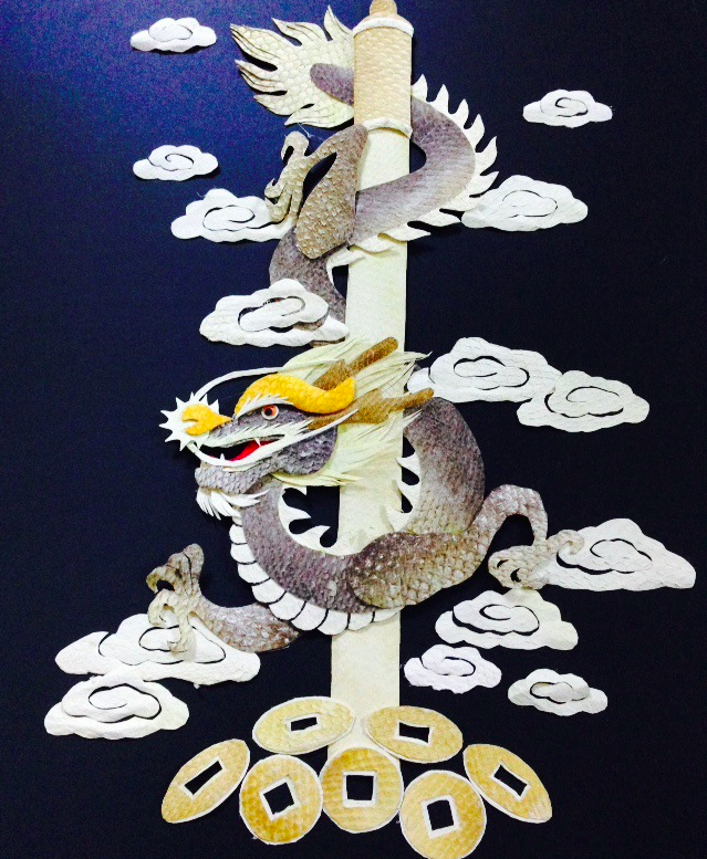 制作魚皮畫,首先必須對魚皮進(jìn)行加工處理。手工費(fèi)時大約3天,要經(jīng)過剝制,晾干去鱗、晾曬魚皮、捶熟、漂色等許多細(xì)致環(huán)節(jié)。魚皮畫分為粘貼和鏤刻兩種。粘貼畫制作相對來說較為容易,先勾勒出初稿,然后選好底襯,再選適當(dāng)?shù)聂~皮進(jìn)行剪制。這一步驟特別重要,首先要確定要粘貼的部位,來選則魚皮的顏色,剪完之后,就可往底紙進(jìn)行粘貼了,一幅魚皮畫也就完成了。內(nèi)容一般生活方面的事物,還有動物、人物等等。魚皮鏤刻是先選好魚皮,一般都是選擇比較大的魚皮,有陰刻和陽刻兩種,在魚皮的反面進(jìn)行勾畫(也可直接剪制 ) 經(jīng)過剪刻完成。