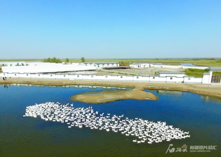 于田縣斯也克鄉(xiāng)稻田養(yǎng)鵝基地(10月14日攝)。該鄉(xiāng)和天山牧歌投資管理有限公司共同投資發(fā)展鵝產(chǎn)業(yè),帶動(dòng)農(nóng)戶就業(yè)增收。 許曉龍攝