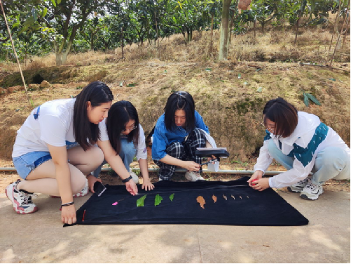 三是恩樂鎮(zhèn)玻烈村芒果種植地調(diào)研。9月4日上午,實踐團成員前往恩樂鎮(zhèn)玻烈村芒果種植地,對基地的病蟲害情況進行調(diào)研。調(diào)研中,種植戶向?qū)嵺`團成員詳細(xì)介紹了基地的氣候條件、技術(shù)管控以及所使用的肥料和農(nóng)藥。通過種植戶的介紹以及實地觀察,實踐團成員結(jié)合所學(xué)知識,指出了種植基地存在的病害和發(fā)生規(guī)律,并給出了具體防治意見。