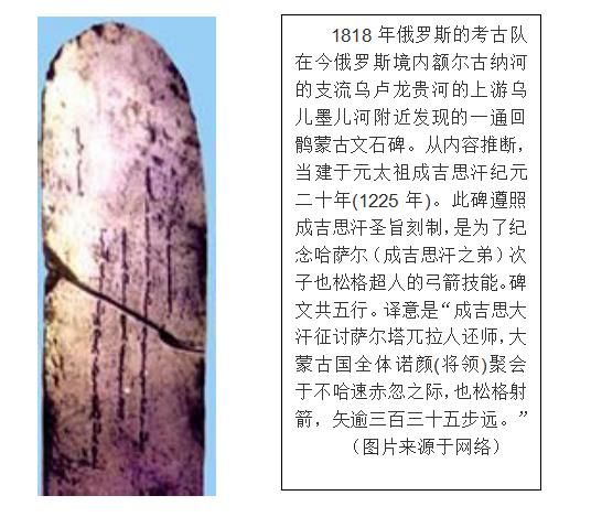 在成吉思汗叱咤風(fēng)云的時(shí)代,中國(guó)北方與宋王朝并立先后存在過(guò)西夏、遼、金、蒙古等少數(shù)民族政權(quán)。這些政權(quán)的主體民族,西夏國(guó)的黨項(xiàng)、遼國(guó)的契丹、金國(guó)的女真、蒙古國(guó)的蒙古,都有本民族語(yǔ)言,最初都沒(méi)有本民族文字。建立政權(quán)后,為了適應(yīng)政治和文化發(fā)展的需要,他們有的創(chuàng)立了本民族文字,如西夏文、契丹字、女真字等等?;佞X西遷之前,與蒙古共同生活在蒙古高原,他們都是游牧民族,經(jīng)濟(jì)文化與許多相似性,語(yǔ)言上同屬阿爾泰語(yǔ)系,分屬蒙古語(yǔ)族和突厥語(yǔ)族,因此蒙古語(yǔ)與維吾爾語(yǔ)的一些日常用語(yǔ)和詞匯是相同或相近的。如黑(哈喇)、黃(霞喇)、金(阿拉泰)在蒙古語(yǔ)與維吾爾語(yǔ)中發(fā)言是一樣的。成吉思汗命塔塔統(tǒng)阿用回鶻字母創(chuàng)建蒙古文字,就是在這樣的時(shí)代背景和回鶻、蒙古的文化聯(lián)系上產(chǎn)生的。現(xiàn)存用回鶻式蒙古文寫(xiě)成的文獻(xiàn)中,最早的是1225年的《也松格碑》(成吉思汗石碑)。