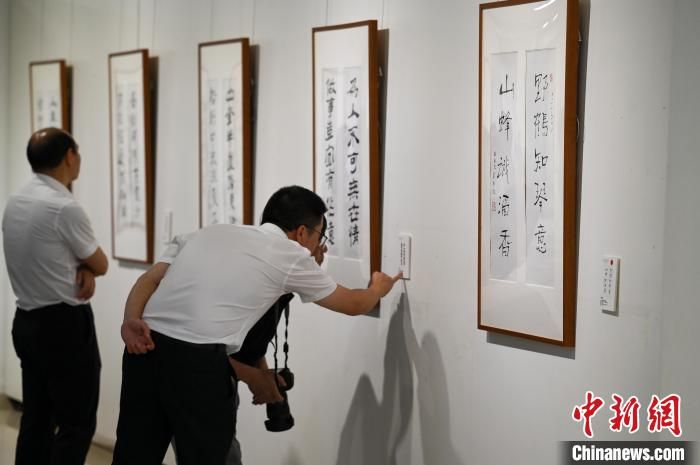圖為觀眾在書(shū)法展上拍照留念?!『闻罾?攝