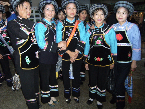 西南地區(qū)的服飾分布地區(qū)包括貴州省黔南布依族苗族自治州羅甸,黔西南州望謨、冊(cè)亨、貞豐、安龍、興義、興仁、安順市的鎮(zhèn)寧、關(guān)嶺、紫云三縣的南部以及云南省羅平等縣(市),基本上都屬于布依語(yǔ)第一土語(yǔ)區(qū)。這個(gè)地區(qū)婦女普遍穿大襟衣、長(zhǎng)褲腳。衣服的盤肩、袖口、襟沿鑲有蘭干。褲腳為大褶邊,或藍(lán)色褲腳鑲一截青布和蘭干。衣服的長(zhǎng)短和褲腳的大小,各地區(qū)都不相同。冊(cè)亨一帶衣服較短,褲腳短小,包花格長(zhǎng)帕,胸頸掛彩珠項(xiàng)圈,手套玉石或骨制手鐲;望謨一帶青年婦女把花格帕折疊后纏戴;貞豐一帶的衣服較長(zhǎng),褲腳不折邊,青年和老年婦女基本相同,但青年婦女包的花帕形狀如牛角(人稱“牛角帕”);靠近北部地區(qū),衣褲都較長(zhǎng),而且不鑲蘭干,衣褲和帕子多為青色;安龍、興義一帶則多包白帕,衣褲亦不鑲蘭干;西南一帶地區(qū)衣褲已漸不鑲蘭干,但還穿自織的土布衣服,頭上還包花格帕,一些地區(qū)與漢族婦女裝束完全一樣了。