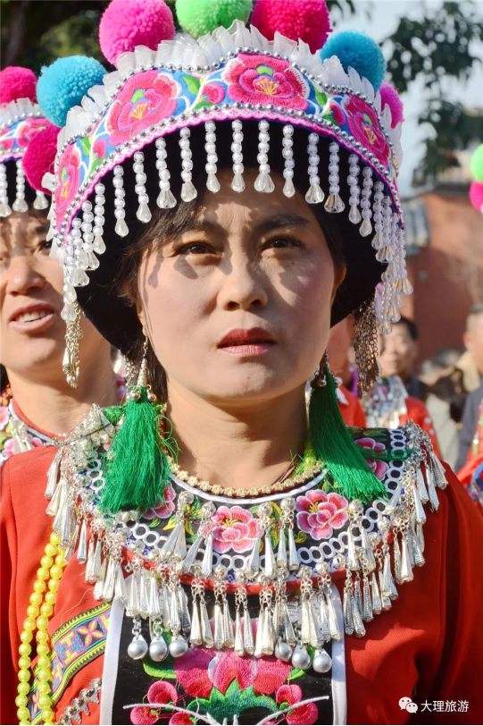 彌渡彝族好賽裝,每逢婚喪嫁娶、趕集、集會都要比一比穿戴。每年農(nóng)歷正月十五鐵柱廟彝族踏歌會,那是賽裝高潮。
