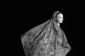 星空密碼絲巾上的紋樣圖形是和上古時(shí)代的文明聯(lián)系在一起的。傳說中的“洛書”即“九宮圖”的原型,就保留在古老的苗繡服裝上。中國(guó)造型文明的起始源于星相學(xué)的認(rèn)知。關(guān)于這些傳說,在古老的苗繡中找到了印證與答案。設(shè)計(jì)沿用古老繡片上保留下來的這些神秘符號(hào),通過再演繹,讓古老的智慧穿越時(shí)空,熠熠生輝。