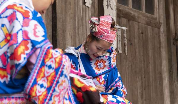 • 在貴州苗族村寨,有這樣一種服飾,或繡或織,五彩繽紛,圖案為龍鳳、鳥雀、蝴蝶,也有青蛙、魚、泥鰍,自然...
