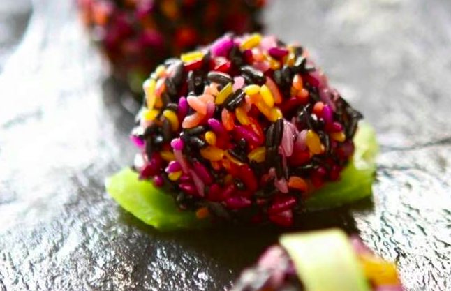 米飯常捏成飯團,便于攜帶,食之口味又別具一格。彩色糯米飯也捏成飯團,不同顏色的飯團陳列在一起,鮮艷奪目。彩色飯的色彩原料,不僅起到著色的作用,也起到調(diào)味的作用,不同的色飯有不同的香味。米飯經(jīng)著色處理后,不易餿、不易壞,米飯著色起到了防腐、保鮮的作用。