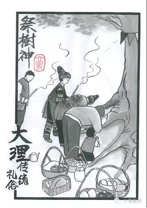 在大理各個(gè)彝族村寨都有神樹,被稱作“密枯”神樹。