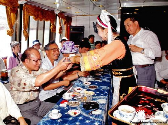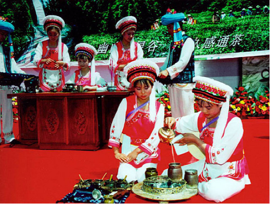 白族熱情好客,先客后主是白族待客的禮節(jié)。家中來(lái)了客人,以酒、茶相待。著名的“三道茶”就是白族的待客禮。但白族人倒茶一般只倒半杯,倒酒則需滿(mǎn)杯,他們認(rèn)為“酒滿(mǎn)敬人,茶滿(mǎn)欺人”。受到白族人熱情的款待,應(yīng)說(shuō)聲“挪衛(wèi)你(謝謝)”來(lái)表示你的謝意和感激之情。