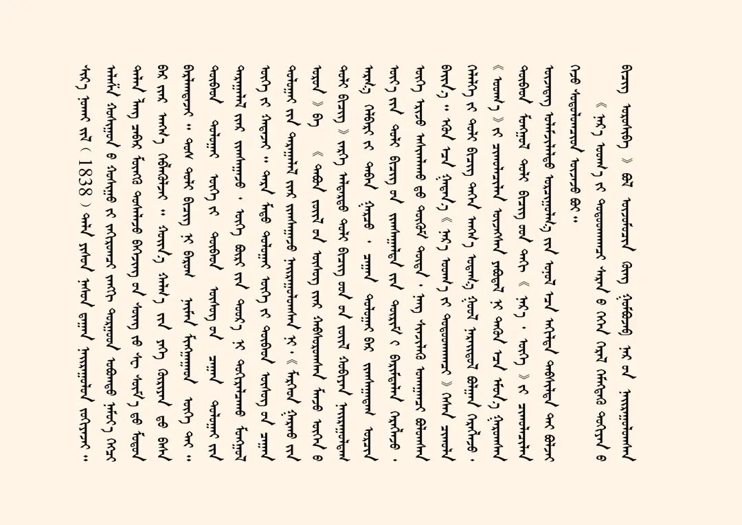 藏蒙對照詞典《詳解月光辭典》又稱《浩月輝映詞典》,該詞典由阿拉善拉隆巴阿旺丹德爾編著,清道光十八年(1838)北京嵩祝寺木刻本。1卷,139葉,頁面尺寸10.6×56厘米,版框尺寸7.5×49厘米,四周雙欄,梵來裝。每頁以藏蒙、藏蒙四行為階梯排列,每列35行,每行1字。頁面左側(cè)有藏文頁碼,右側(cè)有漢字《永》和漢文頁碼。