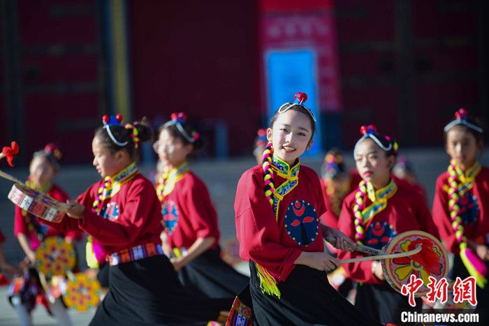 資料圖為西藏自治區(qū)拉薩市城關(guān)區(qū)慈覺(jué)林?jǐn)?shù)十名孩子練習(xí)熱巴舞。 記者 貢嘎來(lái)松 攝