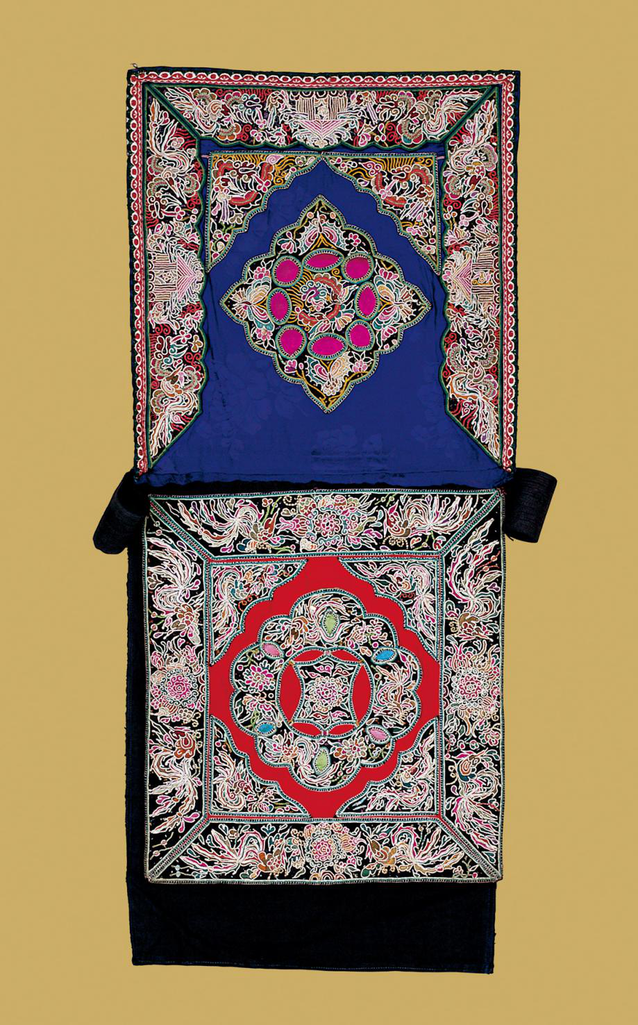 侗繡是侗族婦女最擅長的工藝,它是農(nóng)耕文化的產(chǎn)物。侗族刺繡已被列為少數(shù)民族優(yōu)秀文化遺產(chǎn),并且已經(jīng)逐漸走上產(chǎn)業(yè)化的道路。在侗族服裝中有許許多多的刺繡,它們出現(xiàn)在不同的部位,樣式、顏色也各不相同。除了服裝,刺繡在頭巾、嬰兒背帶、婦女胸兜、布花鞋、鞋墊、煙袋、挎包等也十分普遍。一件刺繡作品的完成,首先要把構想或需要的圖案以剪紙的形式呈現(xiàn)出來,其次將剪紙貼在布條上,布條只有綠色、紅色和黃色。刺繡時,左手固定布條,右手自如地上下穿針。刺繡的顏色也基本上以紅色、綠色和藍色為主,十分貼近大自然。繡品不僅具有極高的裝飾價值,其反復繡綴的工藝還能增加衣物的耐用度。在侗繡中最出名的要數(shù)平秋侗繡。其發(fā)源于九寨,集紡織、印染、剪紙、刺繡于一體。這種繡種僅在錦屏縣平秋鎮(zhèn)及周邊的侗族群體中世代相傳。