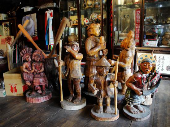 雕刻。高山族的雕刻以木雕和石雕為主,金屬雕刻是現(xiàn)代才出現(xiàn)的。排灣和魯凱兩個(gè)族群的雕刻工藝最為發(fā)達(dá),也最具特色。木板雕刻的紋樣與石壁雕刻大致相似,只是木板雕刻多施色彩,少則紅、白兩種色,多則加上黃、橙、藍(lán)、綠色不等,鮮艷亮麗,引人注目。一般住屋內(nèi)外都有雕刻,貴族的住屋裝飾尤其突出。立柱和壁板雕刻的主題多為敘述家族神話、傳說起源或表彰家族的特殊事跡。雕刻的題材以神話傳說、狩獵生活、祖靈像為主;木雕以人像、人頭、蛇紋、野豬和鹿紋為主;其他還有重圓紋、太陽紋、網(wǎng)形、風(fēng)車形,四葉形、人體生殖器等等。這些題材與排灣人的原始宗教、神話內(nèi)容有密切的關(guān)聯(lián)。住屋的木雕取材于質(zhì)地堅(jiān)硬的樟木、臺灣櫸、二葉松等喬木,而木桶、木臼、木椅等器物,除了堅(jiān)硬木材外,也選擇樟木,烏心石等。至于木匙、煙斗、木梳則喜歡用月橘之類的材質(zhì)。