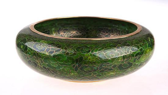 景泰藍(lán)又名“銅胎掐絲琺瑯”,是一種以紫銅作坯,以細(xì)薄的金線或銅絲掐成各種花紋,中充琺瑯釉,燒制而成的瑰麗多彩的工藝美術(shù)品。