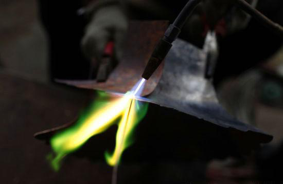 景泰藍(lán)的制作的第一步,就是制胎。這是將不同規(guī)格型號的紫銅,根據(jù)設(shè)計圖的要求裁剪出不同形狀,或是扇形,或為圓形,再用鐵錘把它敲打成瓶、盤、碗、罐等各種形狀的銅胎。粗看那些已經(jīng)制作成型的銅胎,顏色樸素,其貌不揚,似以一種平和淡然的心態(tài),等待著即將到來的明麗璀璨。
