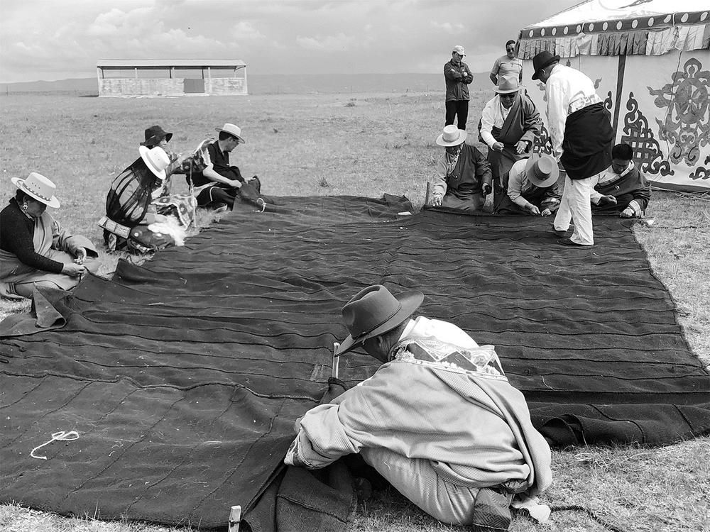 青海藏族黑牦牛帳篷制作技藝已有一千五百多年的歷史,它是藏族牧人主要的住家形式,在漫長(zhǎng)的游牧歷史中,在艱苦的歲月中,黑牦牛帳篷給藏族牧民群眾賜予溫暖。青海藏族黑牦牛帳篷制作技藝主要分布在天峻縣新源鎮(zhèn)、木里鎮(zhèn)、江河鎮(zhèn)、蘇里鄉(xiāng)、龍門鄉(xiāng)、舟群鄉(xiāng)、織合瑪鄉(xiāng)、快爾瑪鄉(xiāng)、生格鄉(xiāng)、陽(yáng)康鄉(xiāng)等地區(qū)。千百年來,當(dāng)?shù)啬撩袢罕娭鹚荻?,在冬、夏季牧?chǎng)來往遷徙,黑帳篷因攜帶方便,質(zhì)地厚重,冬暖夏涼,防風(fēng)防寒、防雨防曬性能強(qiáng),成為牧民生活中不可缺少的重要生活用具。
