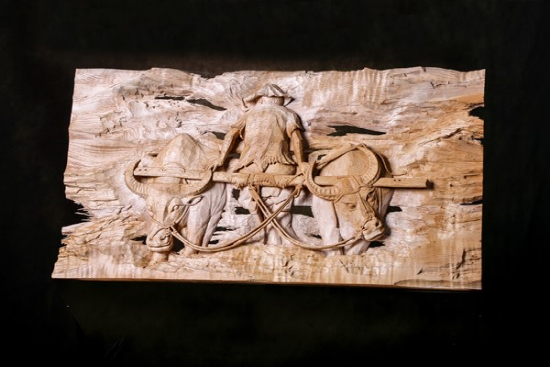 《門神》、《福滿門》這是劍川木雕在繼承傳統(tǒng)基礎(chǔ)上,對傳統(tǒng)的一種大膽嘗試性的發(fā)揚創(chuàng)作。這些作品的特點是,既保留了嫻熟的傳統(tǒng)木雕技藝,只是通過巧妙的組合,在現(xiàn)成的古老大門上雕出“門神”或用舊門框作為木雕作品的邊框,從而產(chǎn)生一種新的意趣,這種創(chuàng)意很適合當(dāng)下都市的審美要求,也是劍川木雕未來發(fā)展中很值得提倡的新思路。木雕復(fù)制《張勝溫畫卷》