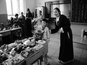 圖為孩子們在上傳承民族文化特色展示課。奶茶原為中國北方游牧民族的日常飲品,至今已有千年歷史,蒙古奶茶至今仍然是日常飲用及待客的必備飲料。陳巴爾虎旗民族小學(xué)開展了具有濃濃的民族風(fēng)味的實踐活動課,通過一起熬制奶茶,學(xué)生和家長、老師們都受益匪淺。