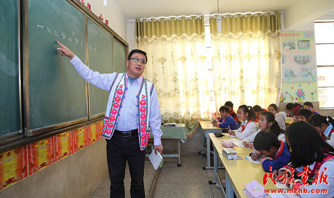 走進干凈整潔的教學樓,陣陣讀書聲漸漸清晰,原來是六年級的學生正在上彝語課??粗J真授課的彝族老師,校長杞萬開說:“建設德高業(yè)精的雙語教師團隊是我們做好雙語教育的根本保證,因此我們每年都選派優(yōu)秀教師參加云南省的雙語教師培訓,提升教師‘彝語為輔,漢語普通話為主’的雙語教育能力。”