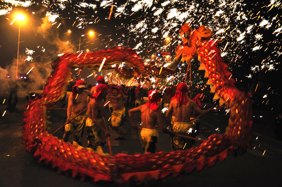 燈節(jié)雖始于漢初,盛于唐宋,但“舞龍”習(xí)俗,約源于殷周“祭天”儀式,以期風(fēng)調(diào)雨順,五谷豐登。