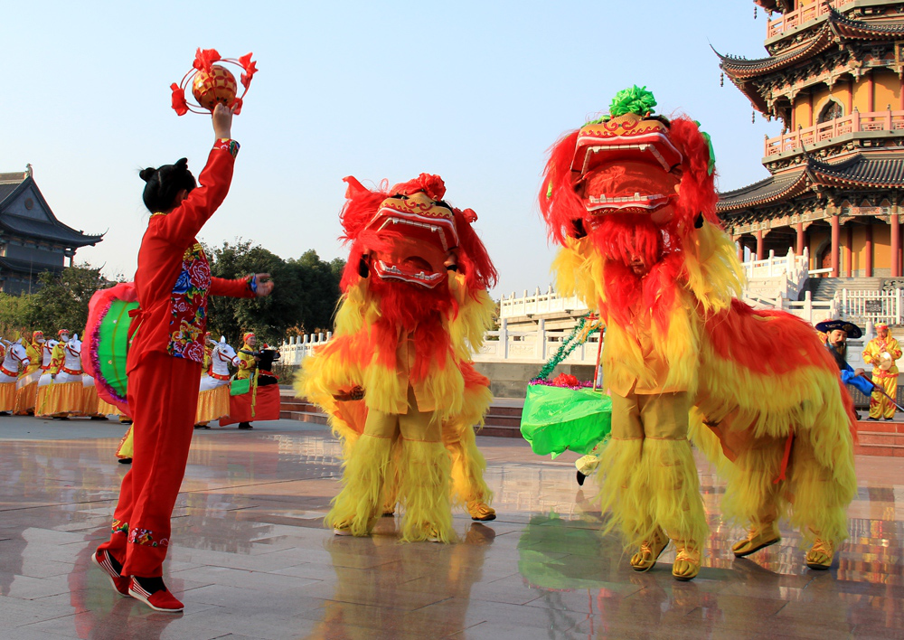 又稱“獅燈”,歷史悠久。從北方到南方,從城市到鄉(xiāng)村,逢年過(guò)節(jié)及慶典盛世都可以見到歡快的舞獅活動(dòng),把老百姓的歡喜心情表達(dá)得淋漓盡致,獅舞,獅子在中華各族人民心目中為瑞獸,象征著吉祥如意,從而在舞獅活動(dòng)中寄托著民眾消災(zāi)除害、求吉納福的美好意愿。獅舞歷史久遠(yuǎn),唐宋詩(shī)文中多有對(duì)獅舞的生動(dòng)描寫?,F(xiàn)存獅舞分為南獅、北獅兩大類,南獅具有較多的武功高難技巧,神態(tài)矯健兇猛;北獅嬌憨可愛(ài),多以嬉戲玩耍為表演內(nèi)容;根據(jù)獅子假型制作材料和扎制方法的不同,各地的獅舞種類繁多,異彩紛呈。