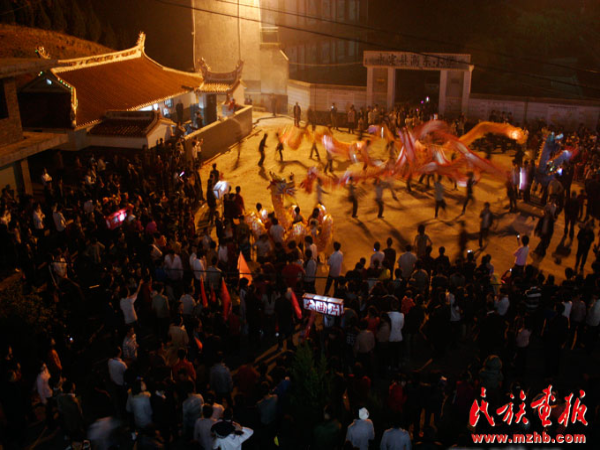 鑼鼓喧天,鞭炮齊鳴。每年的正月十三至正月十五,承啟樓所在的高頭鄉(xiāng)都要舉行隆重的民間舞龍活動(dòng),祈求新一年風(fēng)調(diào)雨順、平安吉祥,比春節(jié)還要熱鬧。由于舞龍都是年輕人來參加,元宵節(jié)舞龍又可以稱做年輕人的盛會(huì)。