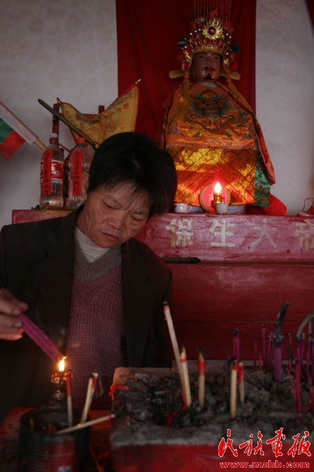 兩年來,作為保生大帝廟守廟人,江云山早上起來最重要的事情就是打開廟門,給諸神上香,敬茶。除了保生大帝神外,廟里還供奉有關(guān)公和文昌君。人們一般向關(guān)公神祈求發(fā)財(cái),向文昌君神祈求兒女考上大學(xué),早日成才。江云山說,只要真心信奉,人們來年各方面的愿望都會(huì)得到神靈的保佑。