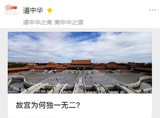 本文內(nèi)容來源“道中華”公眾號(hào)文章《故宮為何獨(dú)一無二?》,點(diǎn)擊標(biāo)題或圖片即可閱讀。