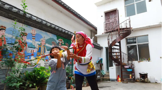 傳統(tǒng)文化時時學,白族舞蹈代代傳。小小的霸王鞭看似簡單,里面卻包含了白族人民田間勞作的智慧。用自己的努力,言傳身教地教授霸王鞭,這愚公移山般的精神也是傳承人的智慧。“今天下午6點,我還要去江尾一趟,教他們的繞三靈團隊跳霸王鞭”,何松康說。